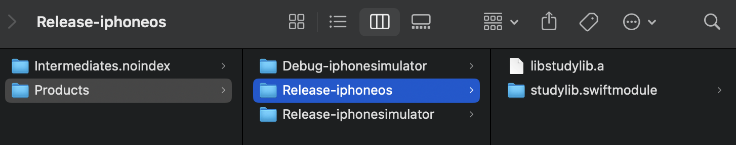 여기서 봐야할건 .a 파일과 swiftmodule이다. 둘다 사용되므로 다 챙기자!